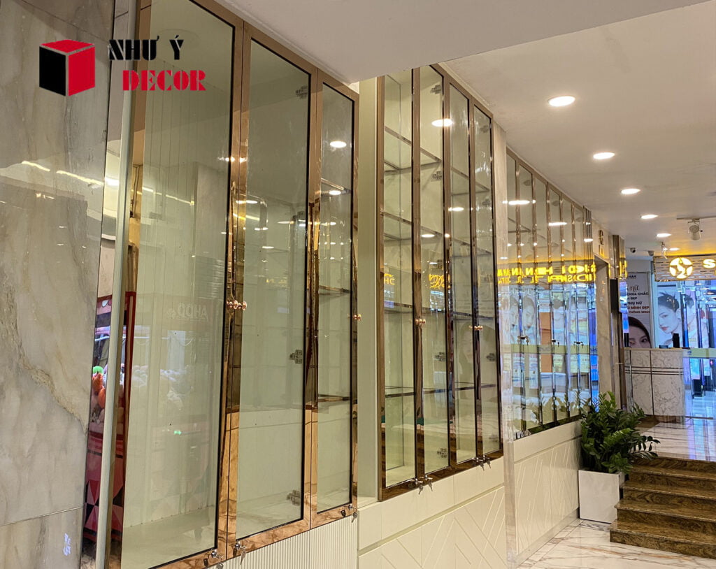 Tủ trưng bày inox mạ vàng là một lựa chọn tuyệt vời để tạo điểm nhấn. Lý do tủ trưng bày inox mạ vàng ngày càng được sử dụng nhiều bởi: