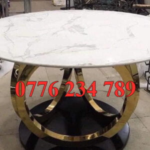 Bàn ghế inox tròn là mẫu được sử dụng phổ biến nhất hiện nay. Với thiết kế mặt bàn tròn được làm bằng đá cẩm thạch và chân bàn inox 304 mạ vàng cao cấp.