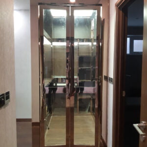 - Kích thước của cửa: Với bộ cửa inox mạ vàng có kích thước lớn, việc gia công sẽ phức tạp hơn rất nhiều so với những bộ cửa có kích thước nhỏ. Vậy nên giá cửa inox mạ vàng có kích thước càng lớn thì sẽ càng đắt.