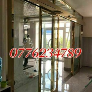 Báo giá cửa kính cường lực khung inox mạ vàng gương