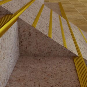Ứng Dụng: Nẹp chống trượt cầu thang được dùng để nẹp vị trí kết thúc hoặc ngay mũi bậc cầu thang giúp trang trí, bảo vệ mép sàn, mũi bậc cầu thang.